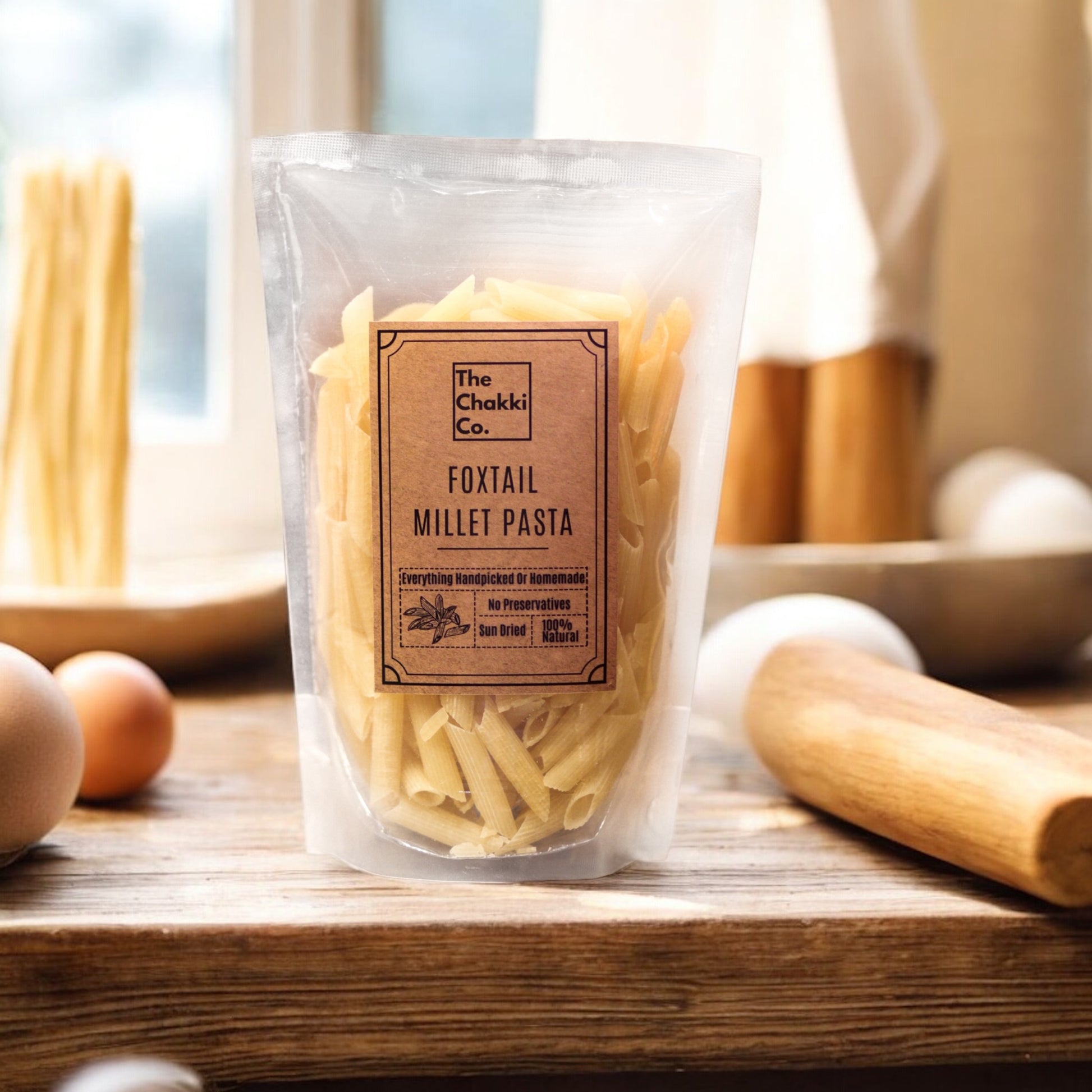 Our Foxtail Millet Pasta is a nutritious, gluten-free alternative to traditional pasta, crafted with a unique blend of 60% foxtail millet, 10% cluster beans, and 30% whole wheat. This wholesome combination offers a rich source of fiber, protein, and essential vitamins. Perfect for anyone seeking to incorporate more grains into their diet without compromising on taste. Enjoy it in your favorite pasta dishes, from simple stir-fries to creamy sauces, for a healthy, delicious meal every time.